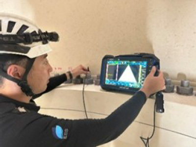 この試験は、外観では確認できないボルト内部の状態を評価するためのもので、超音波を用いて内部に傷や割れなどの欠陥が存在しないかを詳細に点検します。