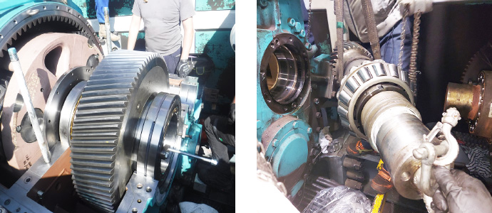 右:Liftraクレーン工法にて、新旧メインベアリング交換を行っています。
