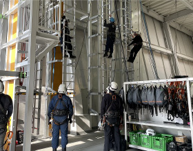 At the EES Training Center, highly realistic training using actual wind turbines is provided by experienced wind turbine work instructors.
