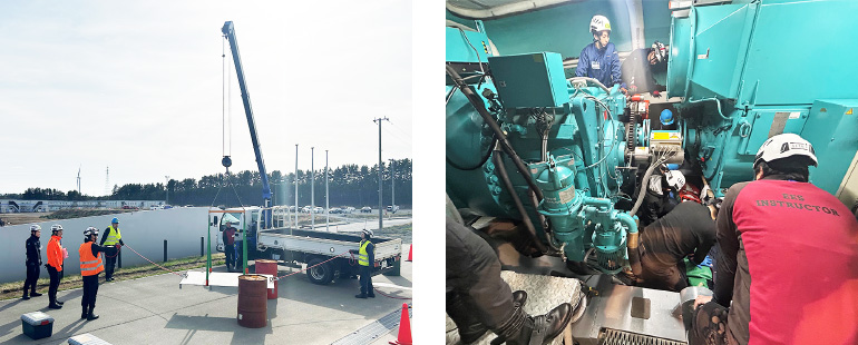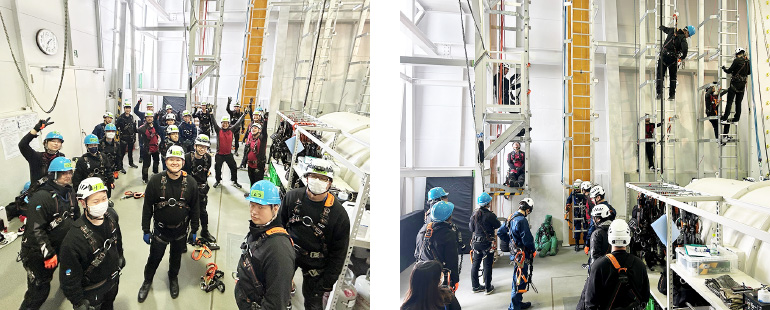 Experienced instructors with extensive experience of wind turbine work are permanently stationed in the center to develop human resources by conducting group training programs throughout the year. The center also cooperates with local governments to provide education and training programs for students. The center received facility accreditation as a Global Wind Organization (GWO) training provider in July 2018, and currently offers BST5, ART, BTT4, EFA, and SLS programs. These are also available to external participants. Industrial Rope Access Trade Association (IRATA) technician certification has been offered at Blade Partners since FY 2020.